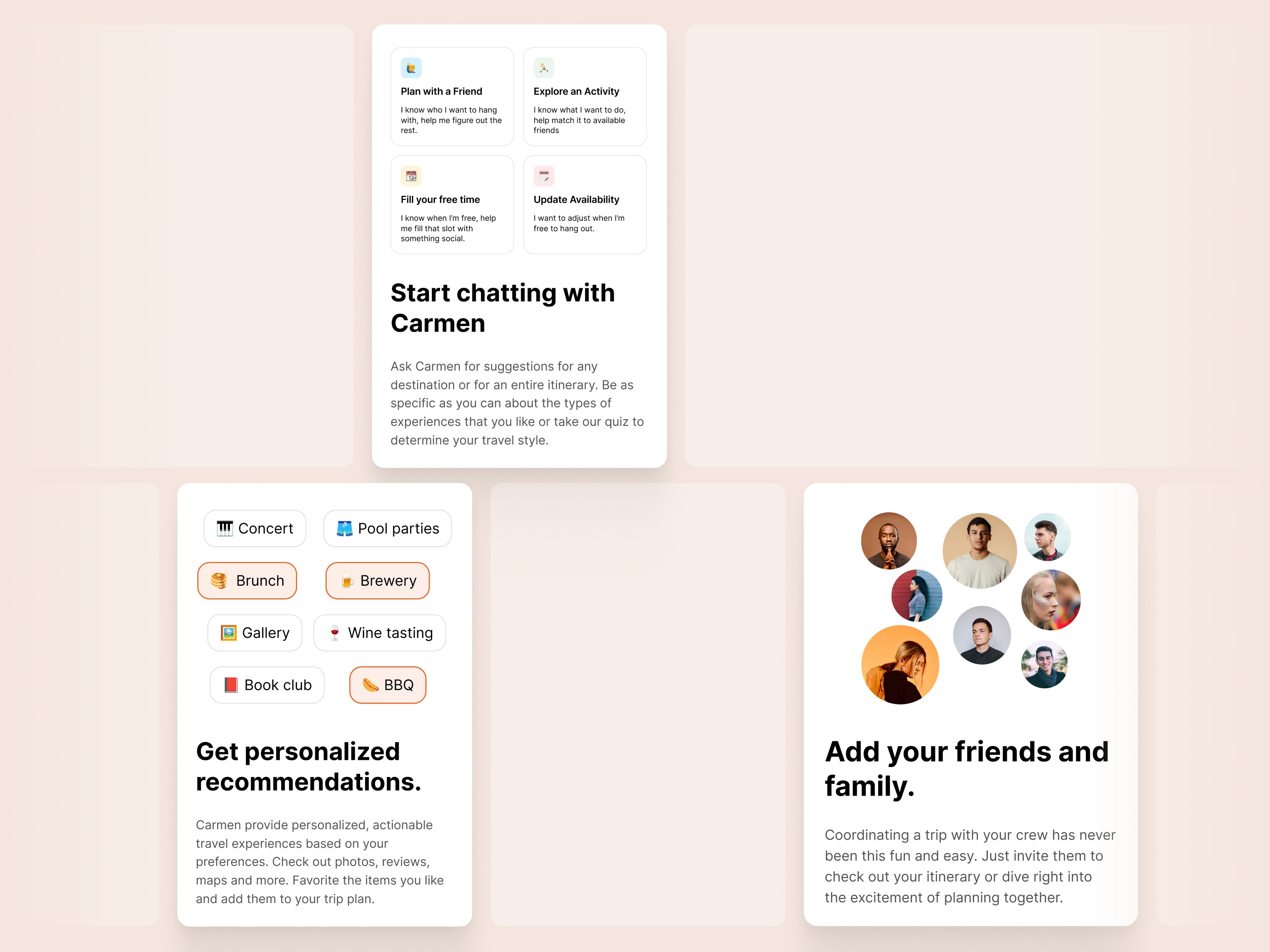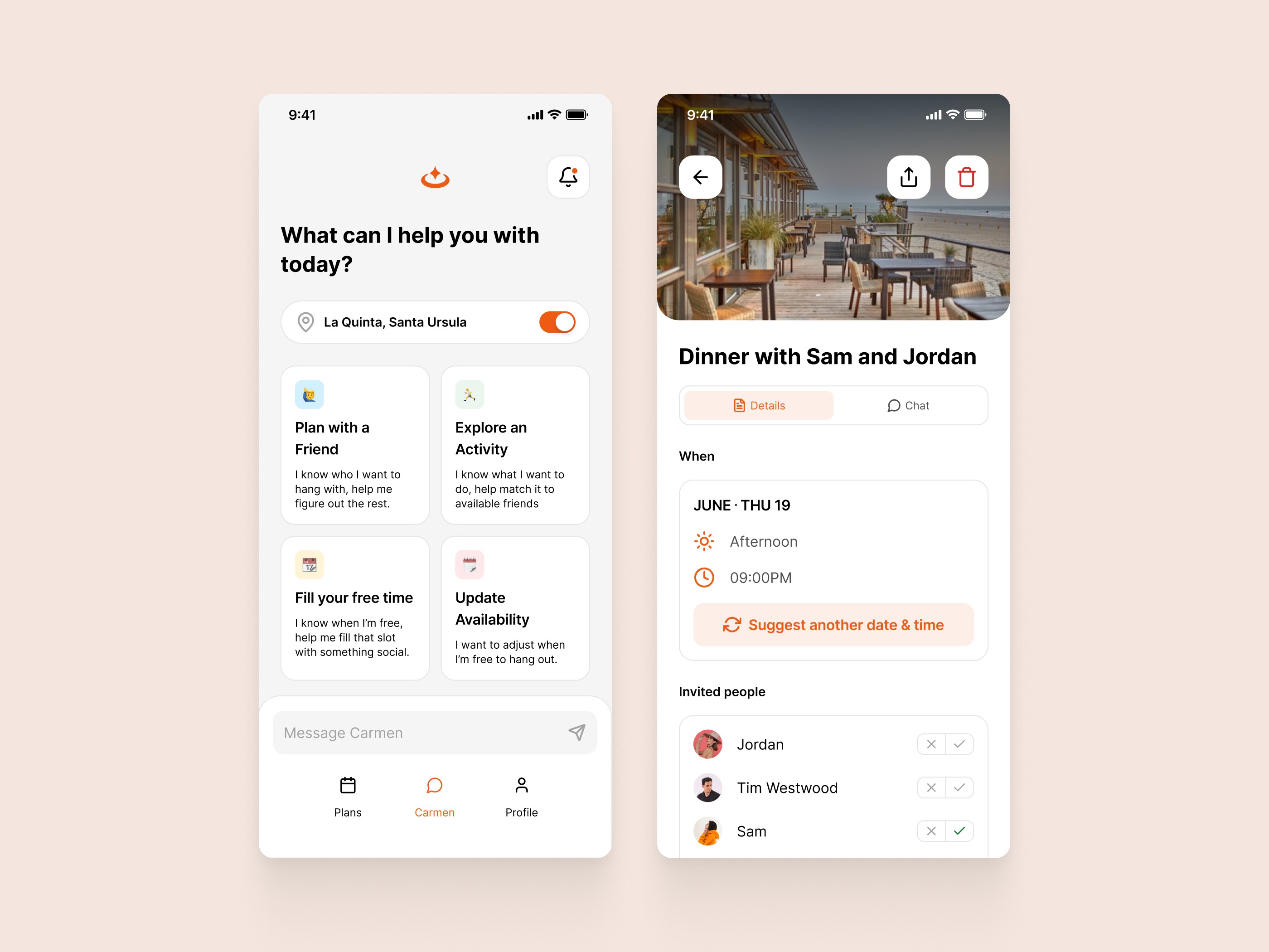 The founder of this startup approached us with a clear challenge: design an AI-powered social app that actually encourages people to spend less time on their phones. In a landscape dominated by infinite scrolling, Carmen was built to be a catalyst for real-life interaction, helping friends move from the group chat to the front door with zero friction.